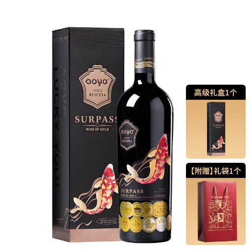 aoyo傲鱼跃黑金R6珍藏级西拉干红葡萄酒750ML礼盒装