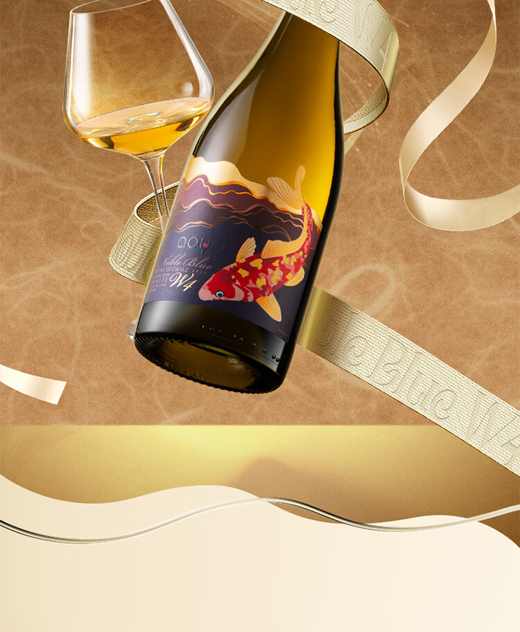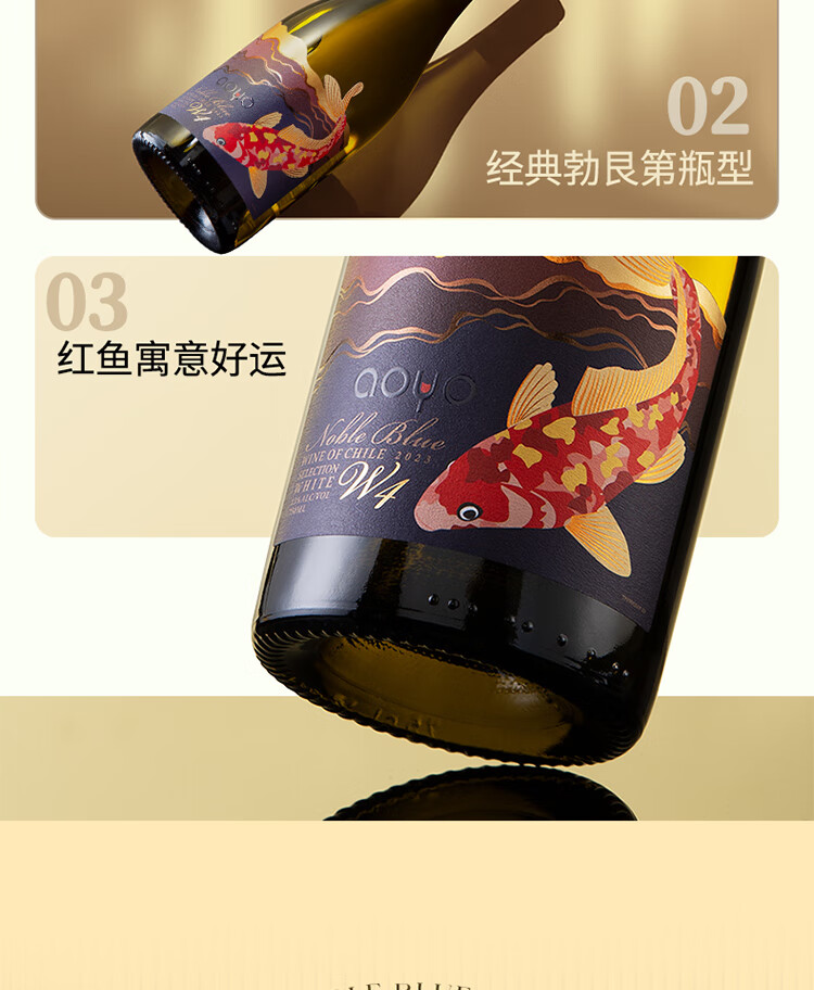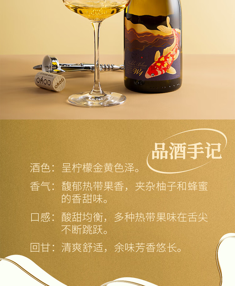 傲鱼尊蓝W4白葡萄酒 13度750ml智利原瓶原装进口霞多丽甜型男女士红酒